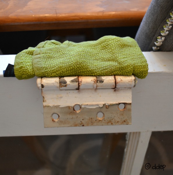 Obviously, I couldn’t fit a door in my crockpot, so I made a portable method. I took a rag and soaked it in really hot water. Then I laid the rag on the hinges and left it there until it was cool again. Once I removed the rag, the paint had softened and easily came off!