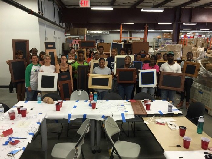 Look at these awesome chalkboard memo board makers! I taught a workshop at the Atlanta Habitat for Humanity ReStore on Saturday and we made chalkboard memo boards out of cabinet doors. Check them out!